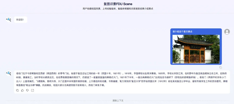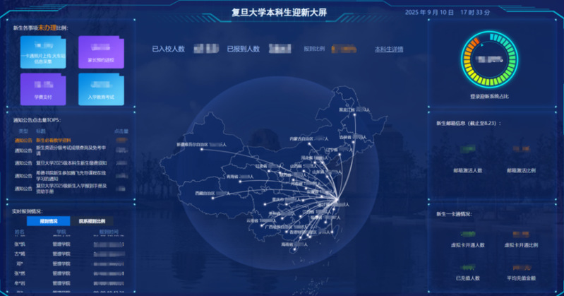 “AI迎新智能助手”打破时间与空间限制、让新生“未到校先知情”,AI助手基于学校自研智能体开发平台结合本地化DeepSeek大模型构建,可为新生提供实时校园学习生活资讯,覆盖从“入学准备”到“校园适应”的全场景需求。VisualRAG智能体应用“复图识景FDU Scene”能够智能识别校园景点照片,并通过图像知识库的向量化检索实现精准匹配与历史文化介绍,为服务师生多场景需求方面注入智慧新动能。“迎新可视化大屏”紧密围绕新生入学过程,通过平台实现数据同步,深度融合迎新服务系统、宿舍管理系统、邮件系统、一卡通系统等多源数据,实时展现新生入学报到进程、宿舍分配入住情况、学籍复查照片提交状态等多个事项的最新动态。