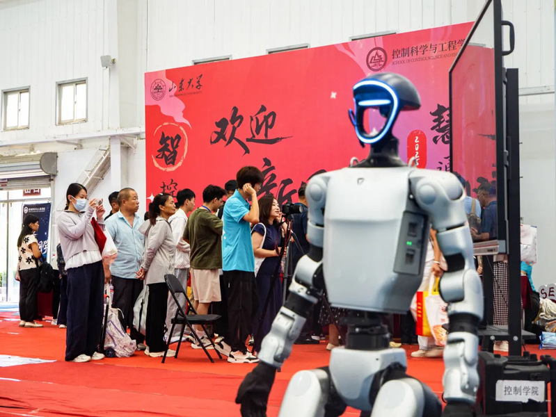 在山东大学迎新现场,新生可以看到智慧迎新展示平台、人形机器人、四足机器人等多种科技元素。智慧迎新展示平台可实时全方位展示各校区及各学院新生报到情况。人形机器人可以实时回答问题,完成招手、握手、打太极拳、“比心”姿势等动作。四足机器人则具备前进、奔跑、负重能力,能为新生搬运行李。让AI科技真正赋能教育,山东大学数智化支撑研究院还面向全校研究生新生打造了“数智素养启航”课程,详细介绍了学校自主研发的“山大AI助手”、“AI学术搜索”和“AI智能体开发平台”等数智赋能工具和平台,以及校园网接入与使用安全、数据保密、个人隐私信息保护、网络钓鱼防范等公共服务、网络安全与合规内容,助力新生安全用网、规范科研、数智科研。