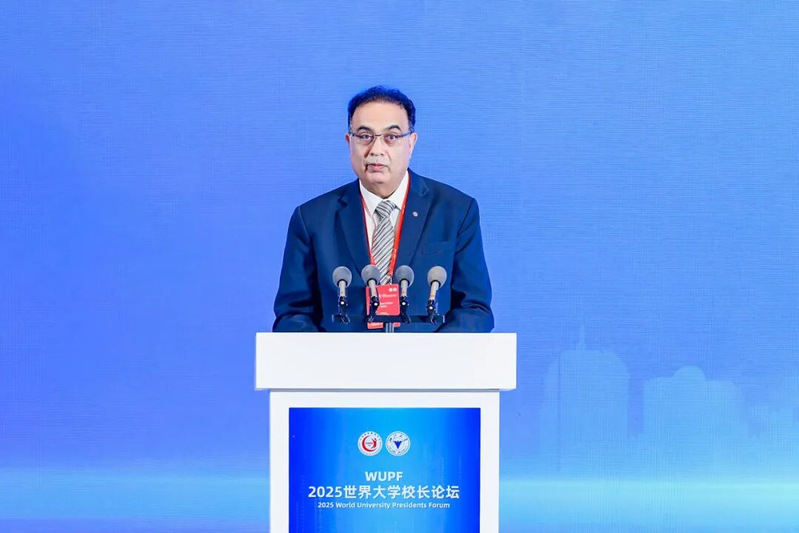 夏泽瀚在致辞中表示,人工智能正在深刻影响高等教育的方方面面,人工智能的发展要以公平、可持续为导向。他强调,大学校长作为高等教育领域的领导者,要加强全球合作,塑造今天的学生,培育未来的公民,让大学在这个前所未有的变革时代,成为智慧、公平和伦理进步的灯塔。