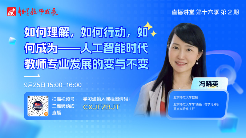超星教师发展直播讲堂第十六季第二期特邀北京师范大学冯晓英教授,分享题为《如何理解,如何行动,如何成为——人工智能时代教师专业发展的变与不变》的主题讲座。