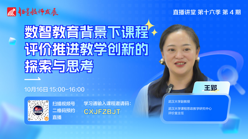 超星教师发展直播讲堂第十六季第四期特邀武汉大学王郢副教授,分享题为《数智教育背景下课程评价推进教学创新的探索与思考》的主题讲座。